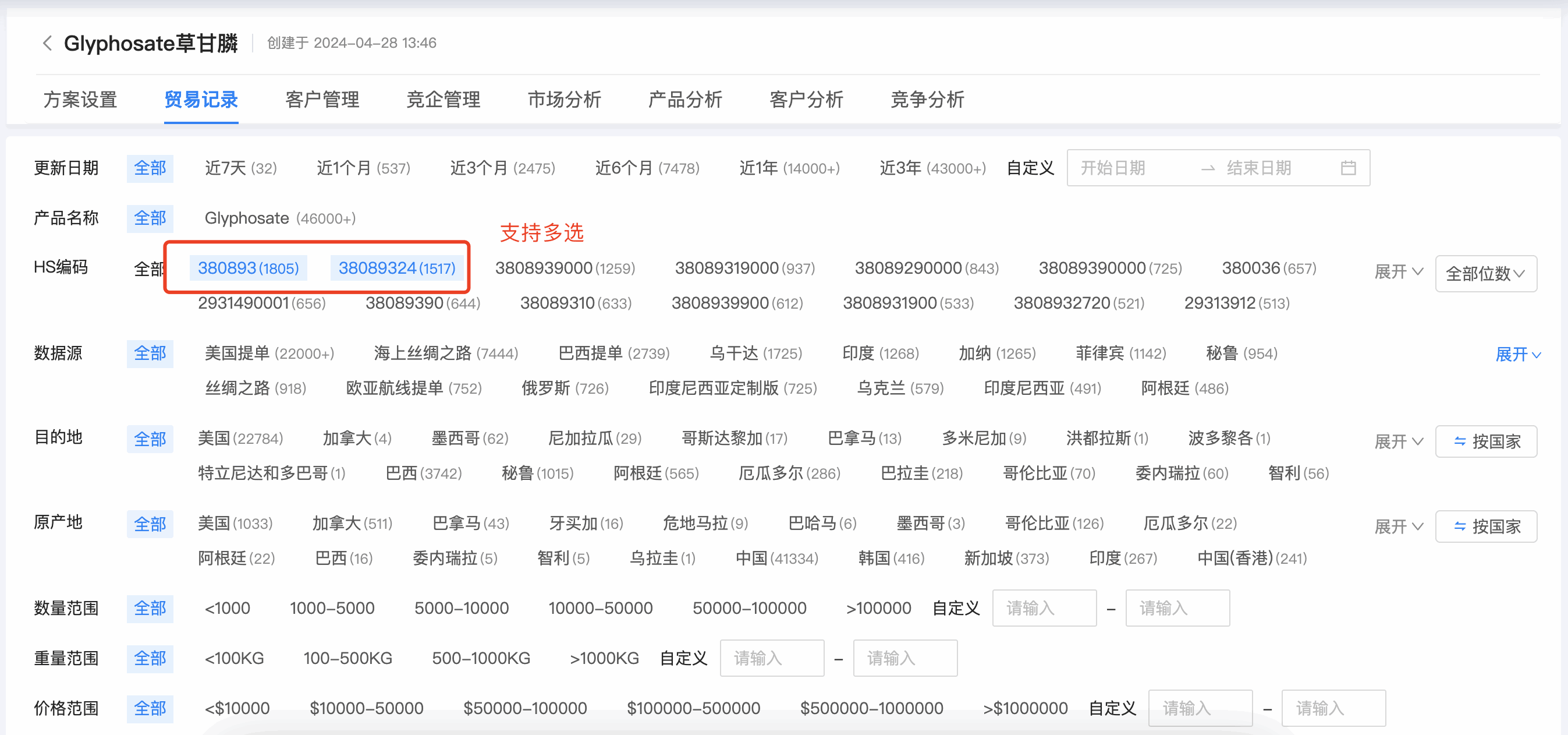bbin宝盈集团官网数据通产品更新:贸易记录的编码筛选支持按 4 位、 6 位编码位数统计;bbin宝盈集团官网数据通产品分析新增「产品需求地理分布、产品需求分层及明细表」分析模块。