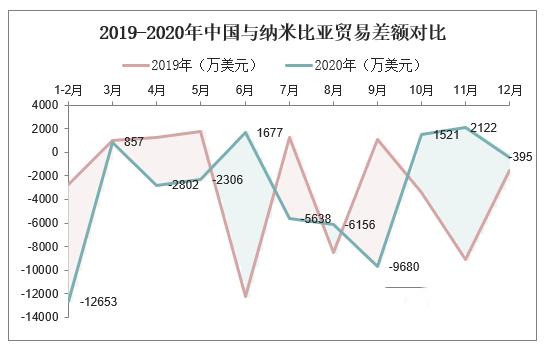 2020年中国与纳米比亚贸易差额为-33476万美元,2019年中国与纳米比亚贸易差额为-31294万美元。